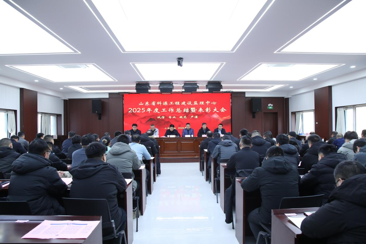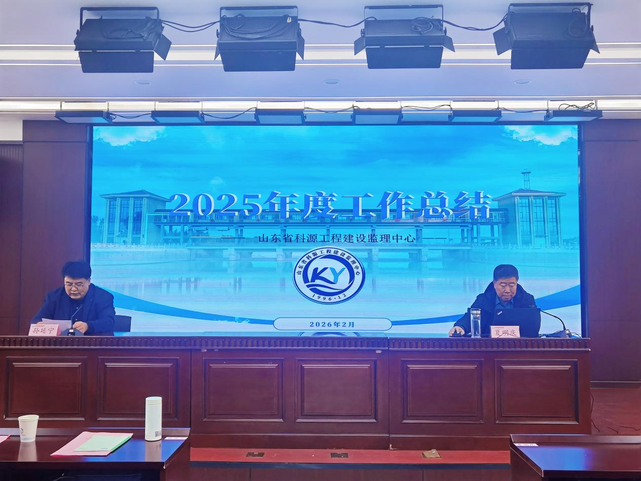 2026年2月7日至8日,山东省科源工程建设监理中心2025年度工作总结暨表彰大会隆重召开。科源监理中心副经理孙延宁主持会议,总经理夏明庆作科源监理中心2025年度工作总结报告,省水科院党委书记郑金刚,党委委员、副院长许尚杰和组织人事办公室主任冯东出席会议,科源监理中心业务骨干及在济职工参会。